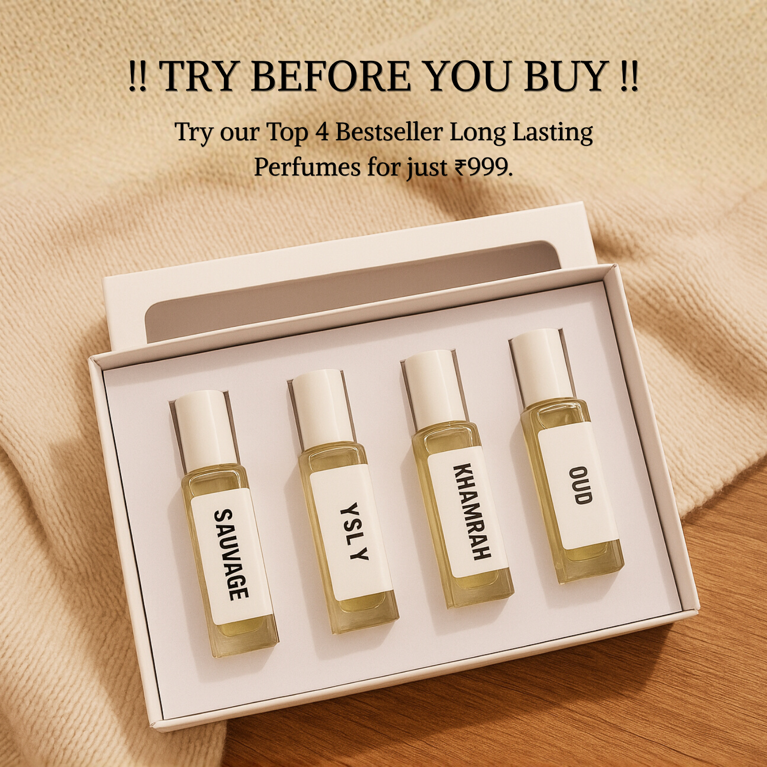 Every bottle is a product of precision, not production lines. Hand-crafted with purpose to bring you premium, long-lasting scents at a price that makes sense.